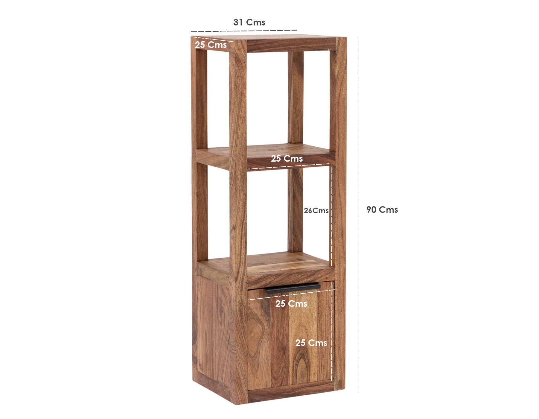 Mit kompakten Maßen von 31x90x25 cm passt das Wandregal fürs Badezimmer auch in kleinere Räume. Zwei offene Ablageflächen bieten dir schnellen Zugriff auf deine Lieblingsprodukte. Hinter der Tür mit stylischem schwarzem Griff findest du zusätzlichen Stauraum – perfekt für alles, was du gerne dezent verschwinden lassen möchtest.
