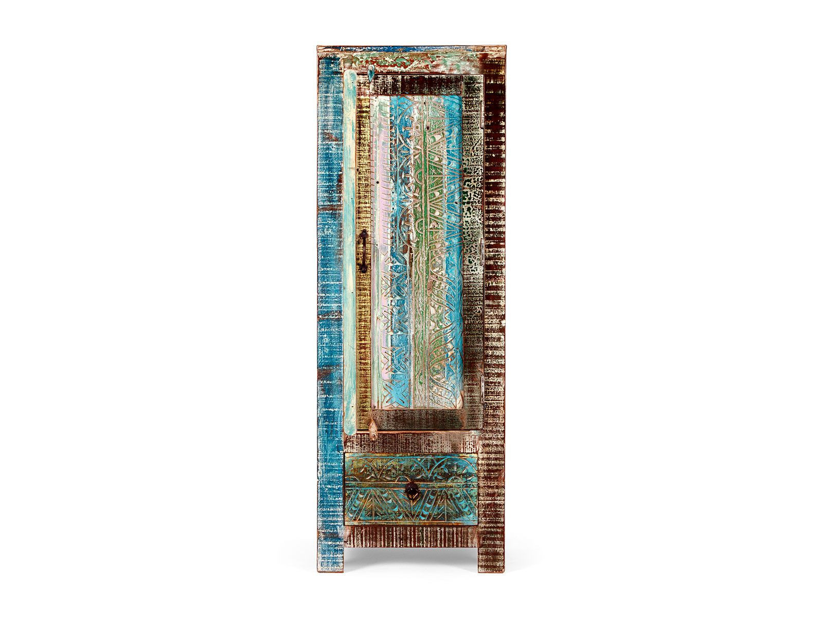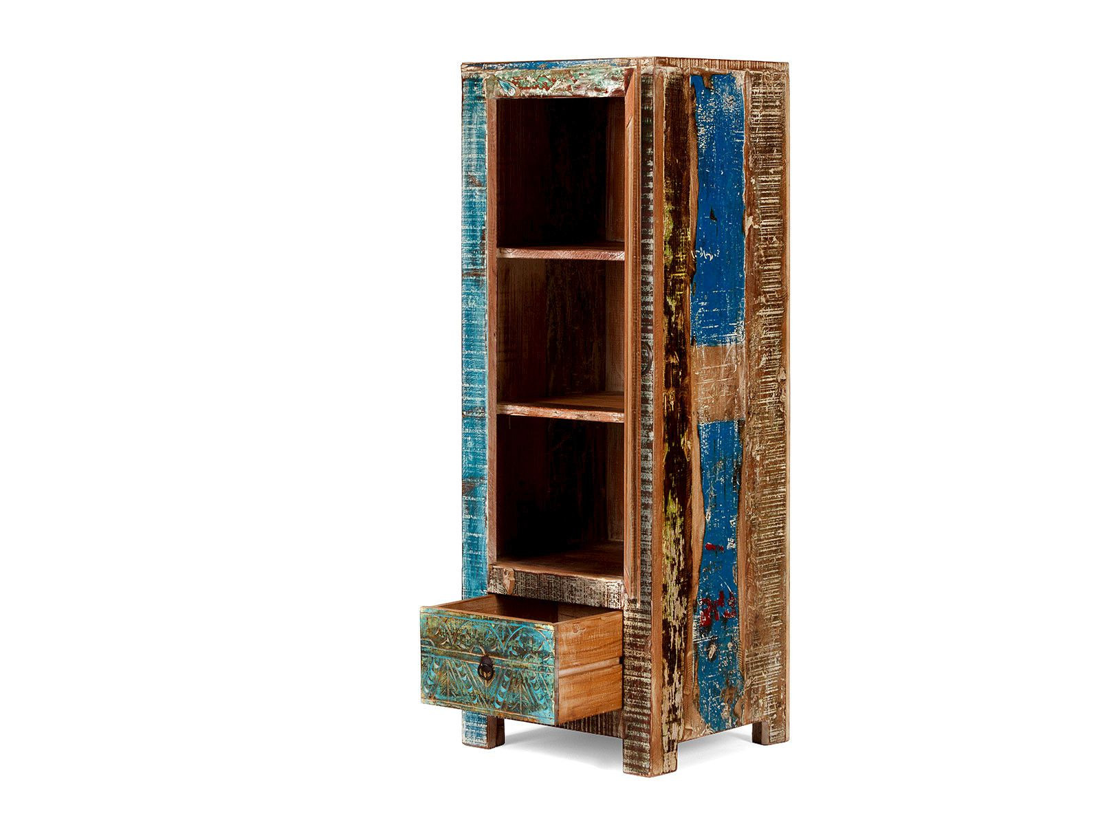 Die lackierte und versiegelte Oberfläche schützt das Holz, trotzdem solltest du milde Reinigung und ein trockenes Tuch wählen. So bleibt das Mangoholz langlebig und das bunte, handgefertigte Finish des Badmöbels erhalten.