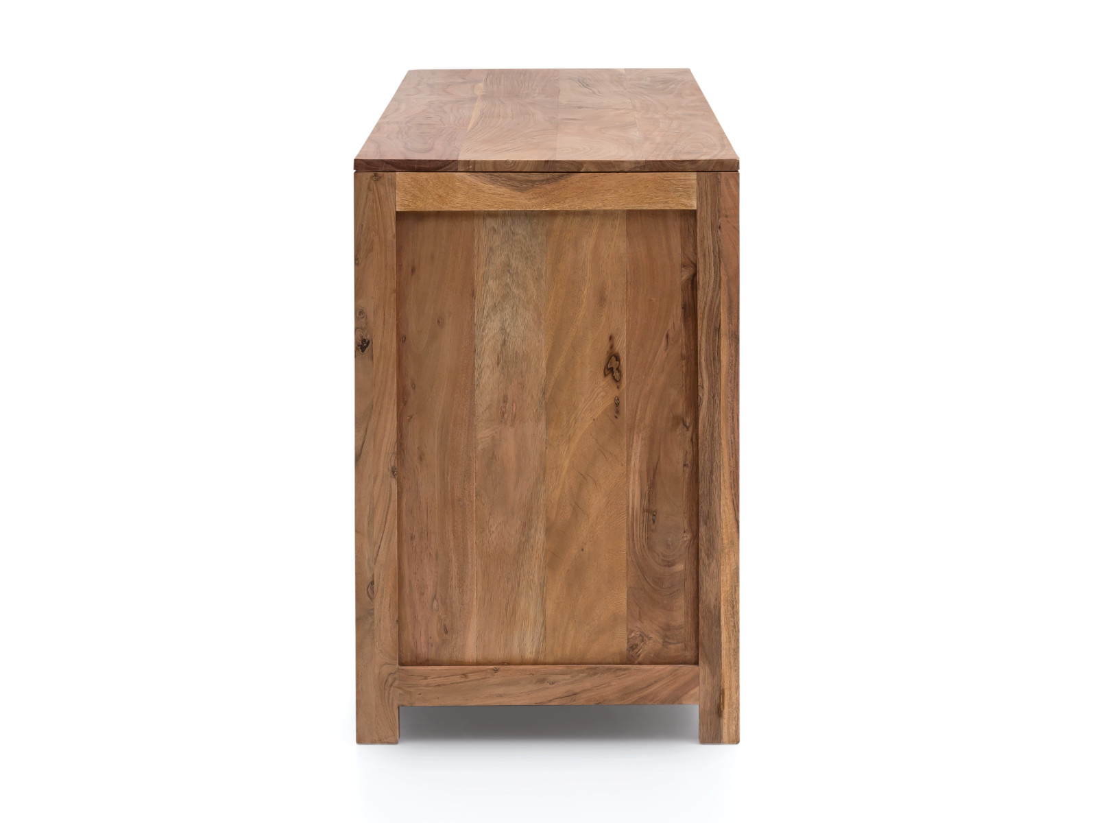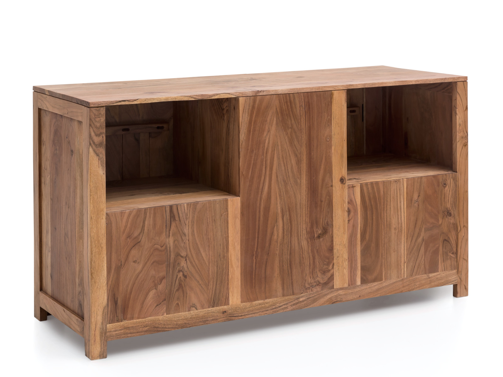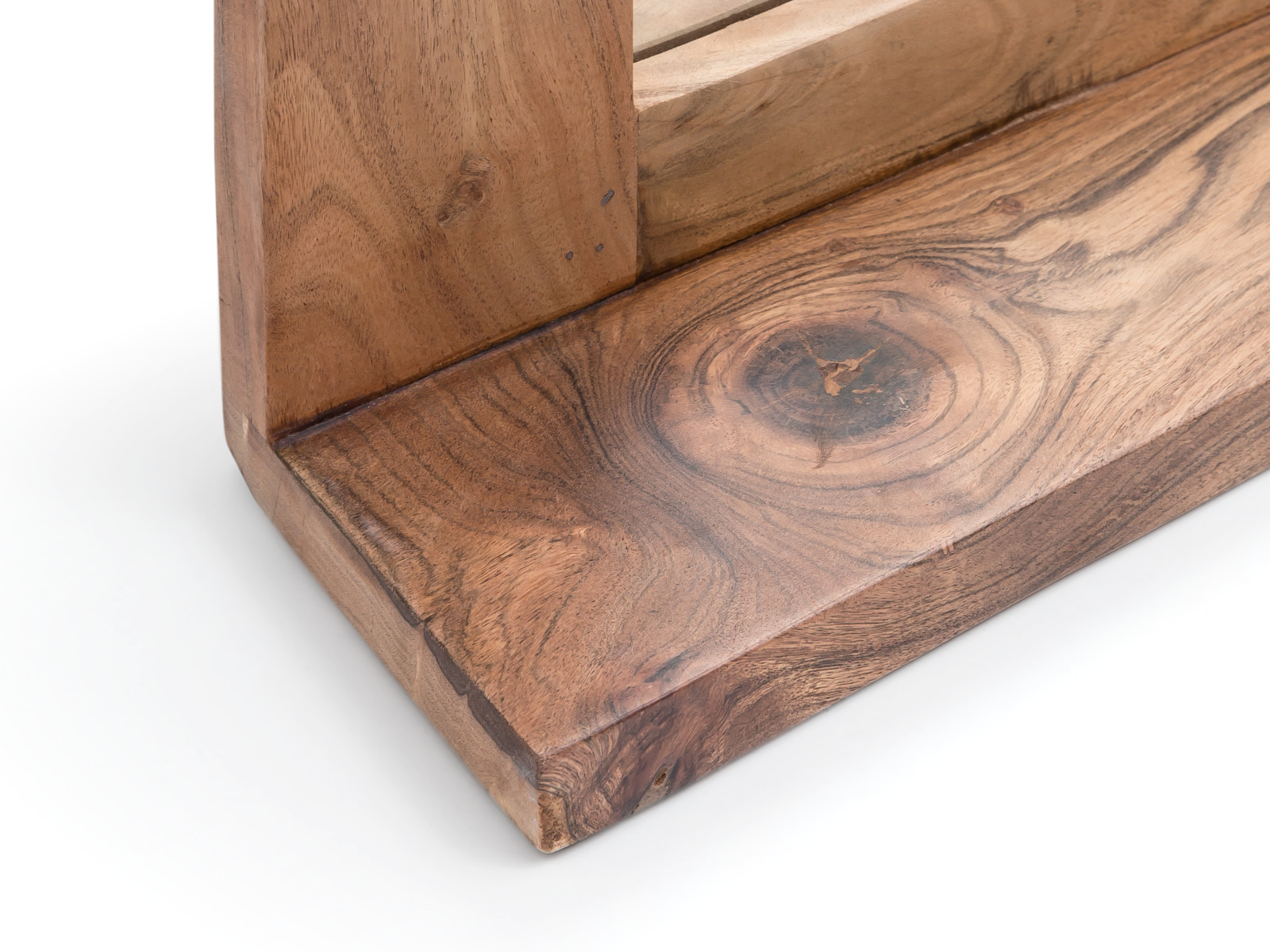 Der Waschtisch ist aus Holz massiv, konkret aus Akazie, gearbeitet. Die Oberfläche ist mit dünnem Schutzlack versiegelt, der die Poren schließt und vor Feuchtigkeit schützt. So bleibt dein Holzmöbel lange schön und zeigt die warme Struktur der Akazie.