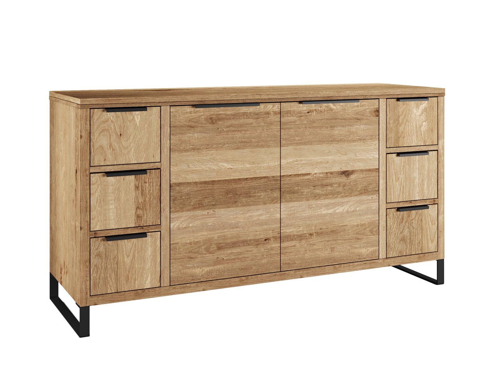 - rustikale Astlöcher werden mit schwarzen Holzwachs gefüllt, passend zu den schwarzen Metallgriffen und -füßen (siehe Detailbild). Dies stellt kein Mangel dar, sondern ist gewollt.