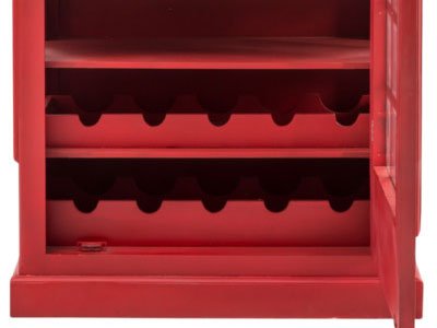 Ein Weinregal im Design einer traditionellen britischen Telefonzelle. Gläser und Flaschen finden in der Glashänge und in den zwei Flaschenablagen Platz. Auf den anderen drei verschiedenen Ablageflächen sowie in dem Schubkasten hält dieser Weinschrank ausreichend Platz für weitere Flaschen, Party-Accessoires oder Rezepte-Bücher bereit.