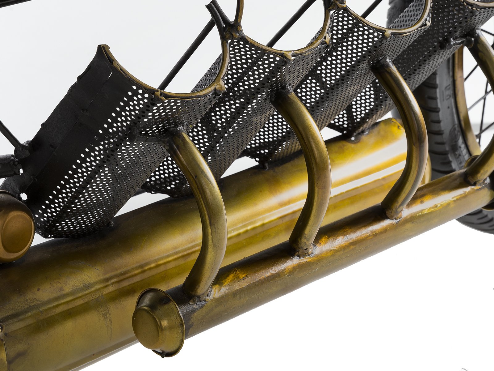 Die Indian Black Motorrad Bar ist ein absolutes Highlight für jeden Biker und Liebhaber von außergewöhnlichen Möbelstücken. Mit einer Breite von 180cm bietet sie ausreichend Platz für alle Barutensilien und lässt sich perfekt als Tresen oder Bartisch nutzen. Die Kombination aus Schwarz und Gold verleiht der Bar einen edlen Look, der durch die Verwendung von Metall und Mangoholz noch verstärkt wird.