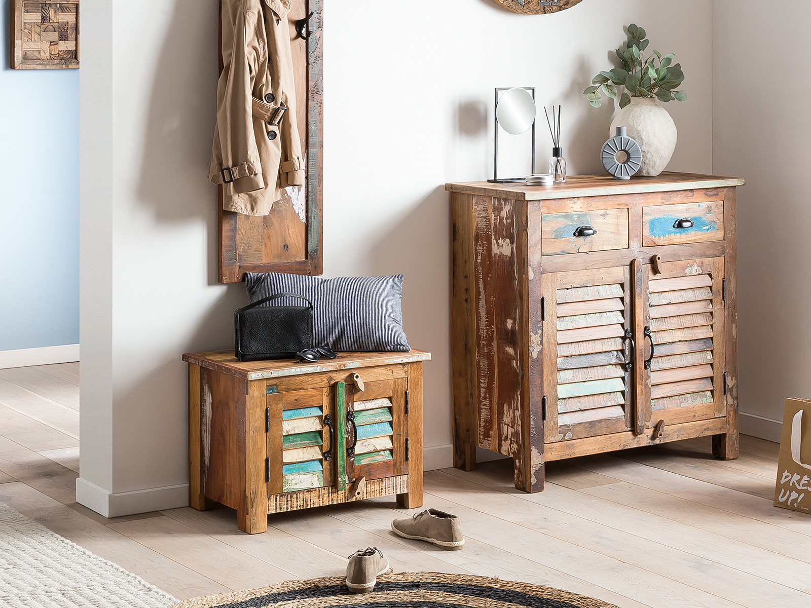 Expressiv & effektiv. Mit dem für Wakefield typisch ausdrucksstarken und rustikalen Look erobern und erweitern wir nun den Eingangsbereich und haben zusätzlich zum Schrank noch eine Kommode, eine Sitzbank und ein Wandpaneel erdacht. Nicht nur eindrücklich, sondern eben auch effektiv sollen unsere Möbel sein. Also setzen wir auf multifunktionale Konzepte und auf ein großes Können auf kleiner Fläche.