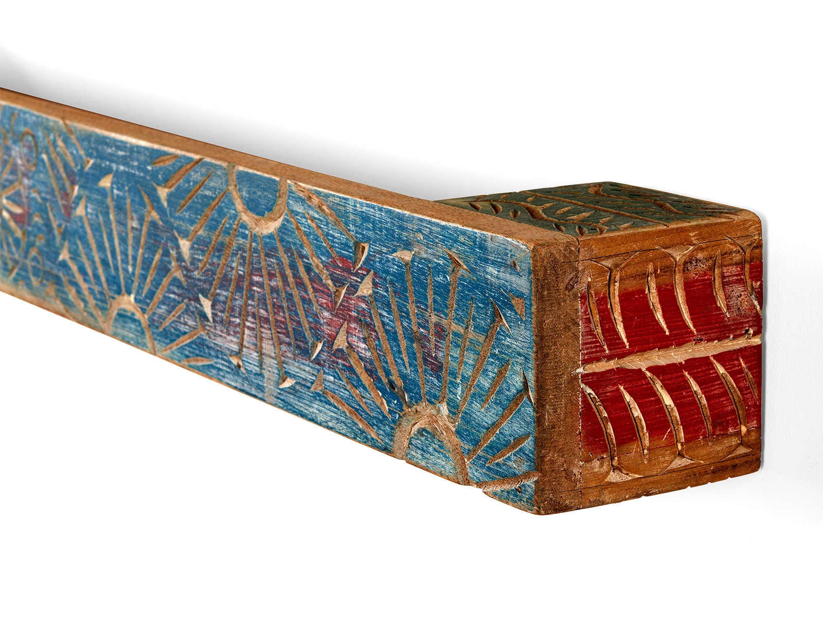 Der Handtuchhalter Blue Lagoon ist ein echtes Möbelstück aus Mango-Holz, das als Handtuchstange und Dekoration im Badezimmer dient; das lackierte Holz zeigt eine reliefartige Struktur, wirkt rustikal und bringt Südsee-Flair ins Bad, ideal wenn du ein Holzregal oder ein kleines Wandregal suchst.