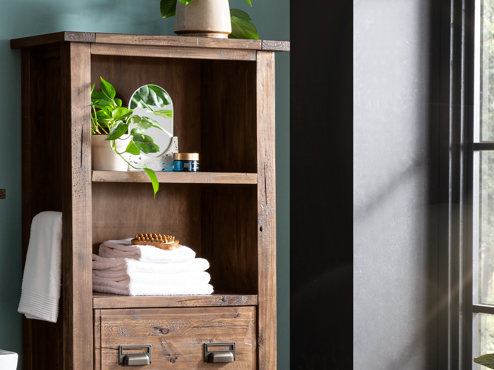 Bad Hochschrank Cancun – rustikaler Stauraum aus Massivholz