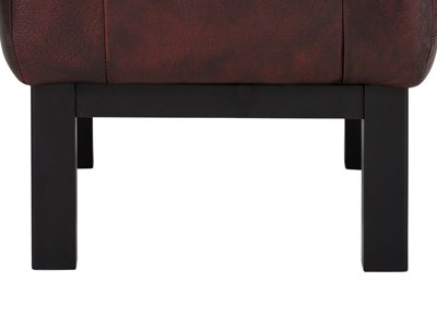 Der hochwertige Lederbezug in warmem, antikem Rot sieht nicht nur eindrucksvoll aus – er fühlt sich auch fantastisch an. Die gepolsterte Oberfläche ist weich und bequem, perfekt zum Sitzen oder Füße hochlegen. Jeder Sitzhocker wird in Handarbeit gefertigt – das spürst Du bei jedem Detail.