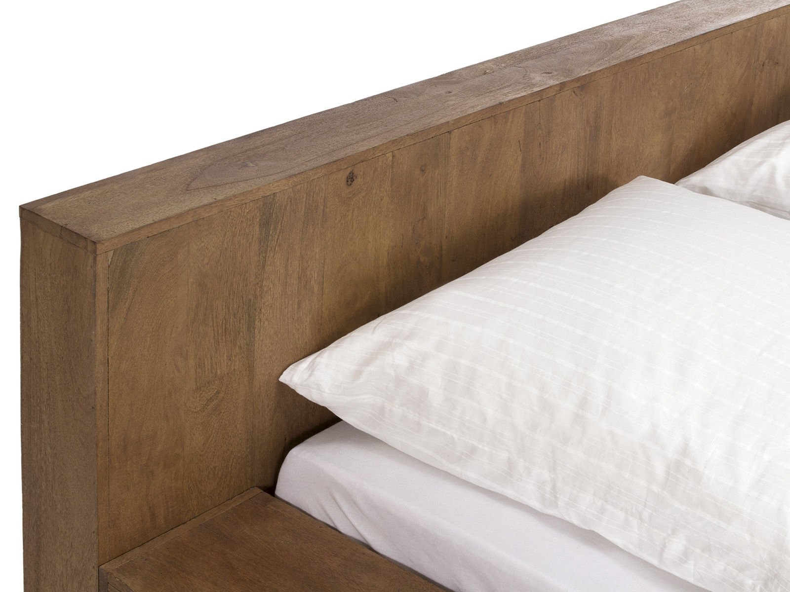 Dank der Naturbraun-Optik passt das Mangoholz gut zu vielen Möbeln im Schlafzimmer. Kombiniere es mit schlichten Holzmöbeln oder weichen Textilien, um den rustikalen Look zu brechen. Das Bett ist perfekt für eine natürliche Einrichtung und setzt als Einzelstück Akzente.