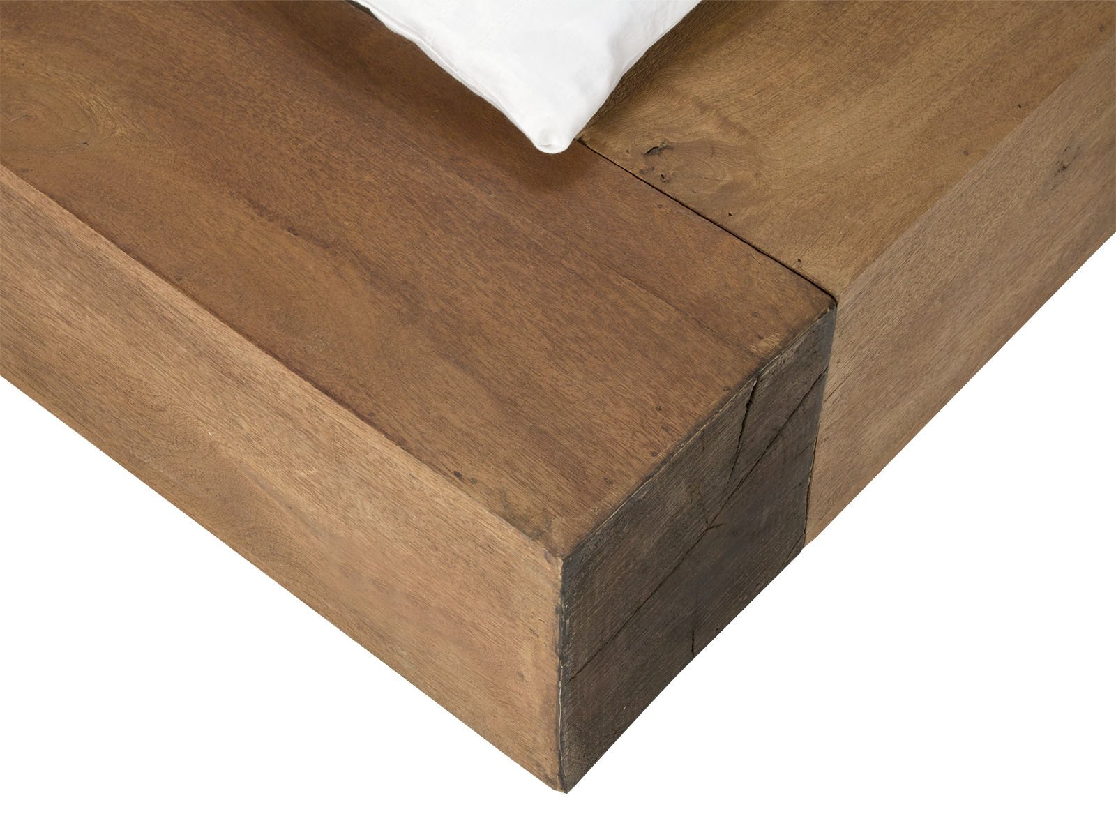 Das Holzbett Dunas sieht aus wie ein echtes Balkenbett aus Echtholz: wuchtig, rustikal und mit einem markanten Holzkopfteil. Aus Mangoholz gefertigt, besteht das Bettgestell aus massiven Holzelementen mit Hohlraum, die trotzdem ein solides, modernes Design ergeben und deinem Schlafzimmer einen natürlichen, warmen Look geben.