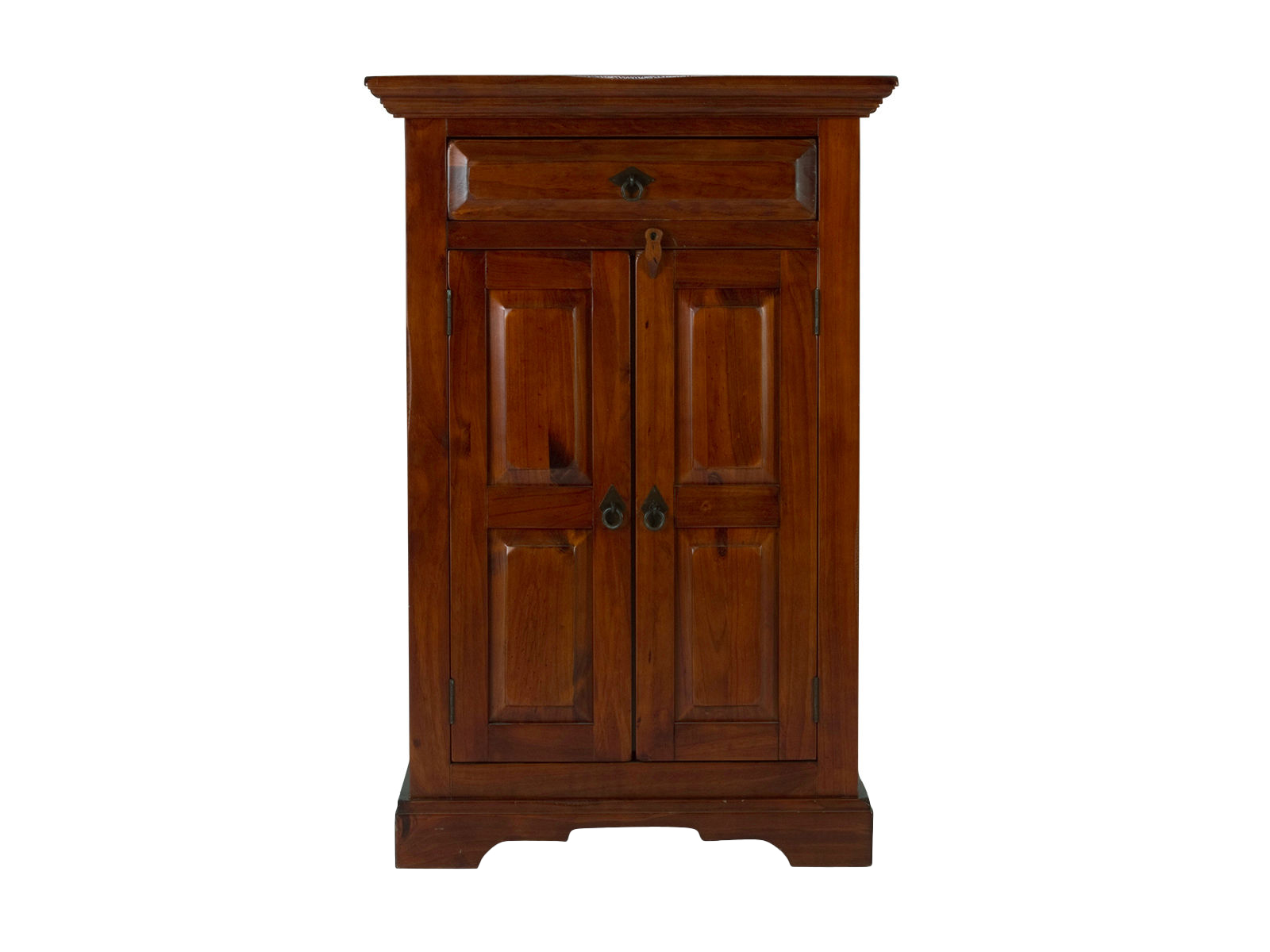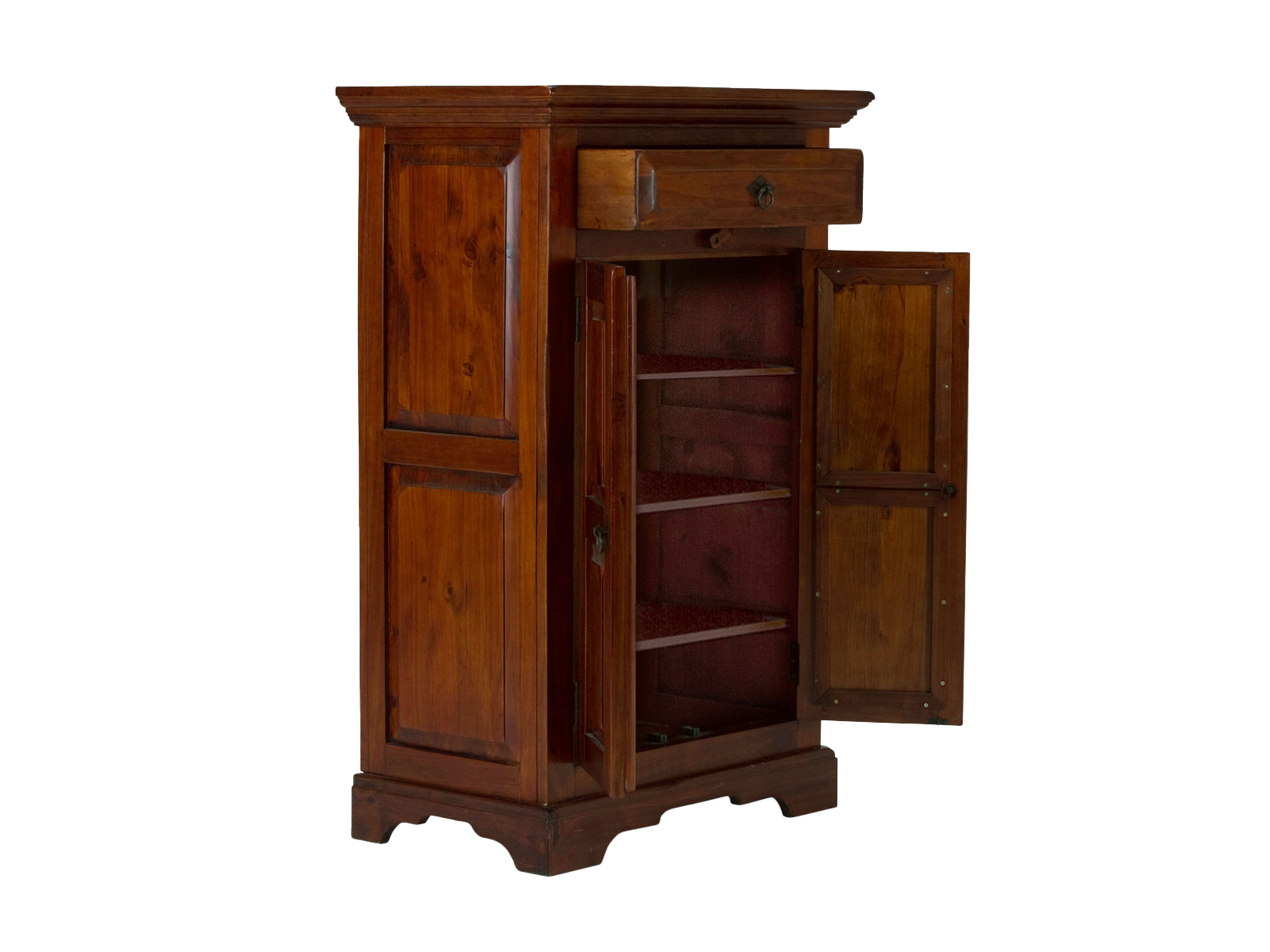 Dank ihrer kompakten Maße ist die braune Kommode ideal für schmale Eingangsbereiche und schafft trotzdem ein großes Stauraumgefühl. Als Flurmöbel im Kolonialstil wirkt sie wie ein Hingucker, der Wärme und Struktur in den Raum bringt, ohne den Flur zu überfüllen.