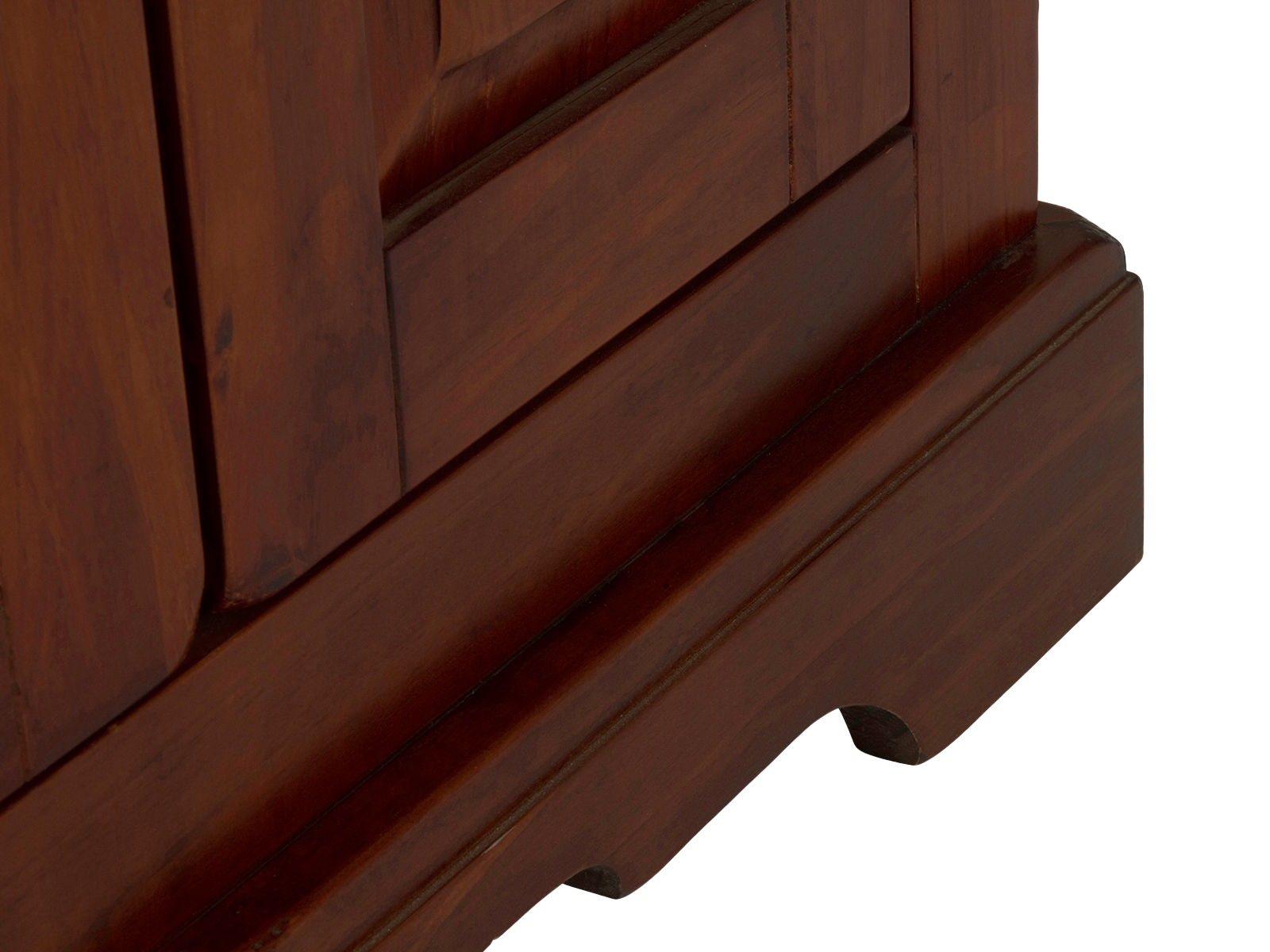 Die Kommode Catana ist aus echtem Pinienholz gefertigt und lackiert, so bleibt die warme Holz-Optik lange erhalten. Das braune Finish gibt der Holzkommode einen einladenden Ton, der gut zu Flurmöbeln im Kolonialstil passt. Du bekommst also einen robusten Holzschrank mit natürlichem Charakter.