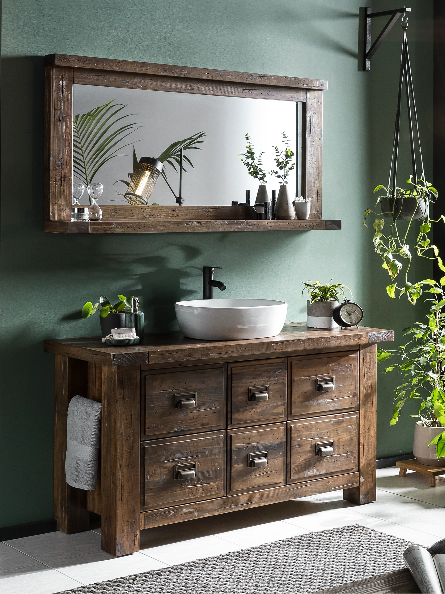 Und wenn du auf originelle Funktionalität stehst, wirst du unsere Waschtische lieben. Sie sind rustikale, praktische Möbelstücke, die dir einen coolen Platz zum Waschen bieten. Mit durchdachten Details bieten sie viel Stauraum für deine Badutensilien.