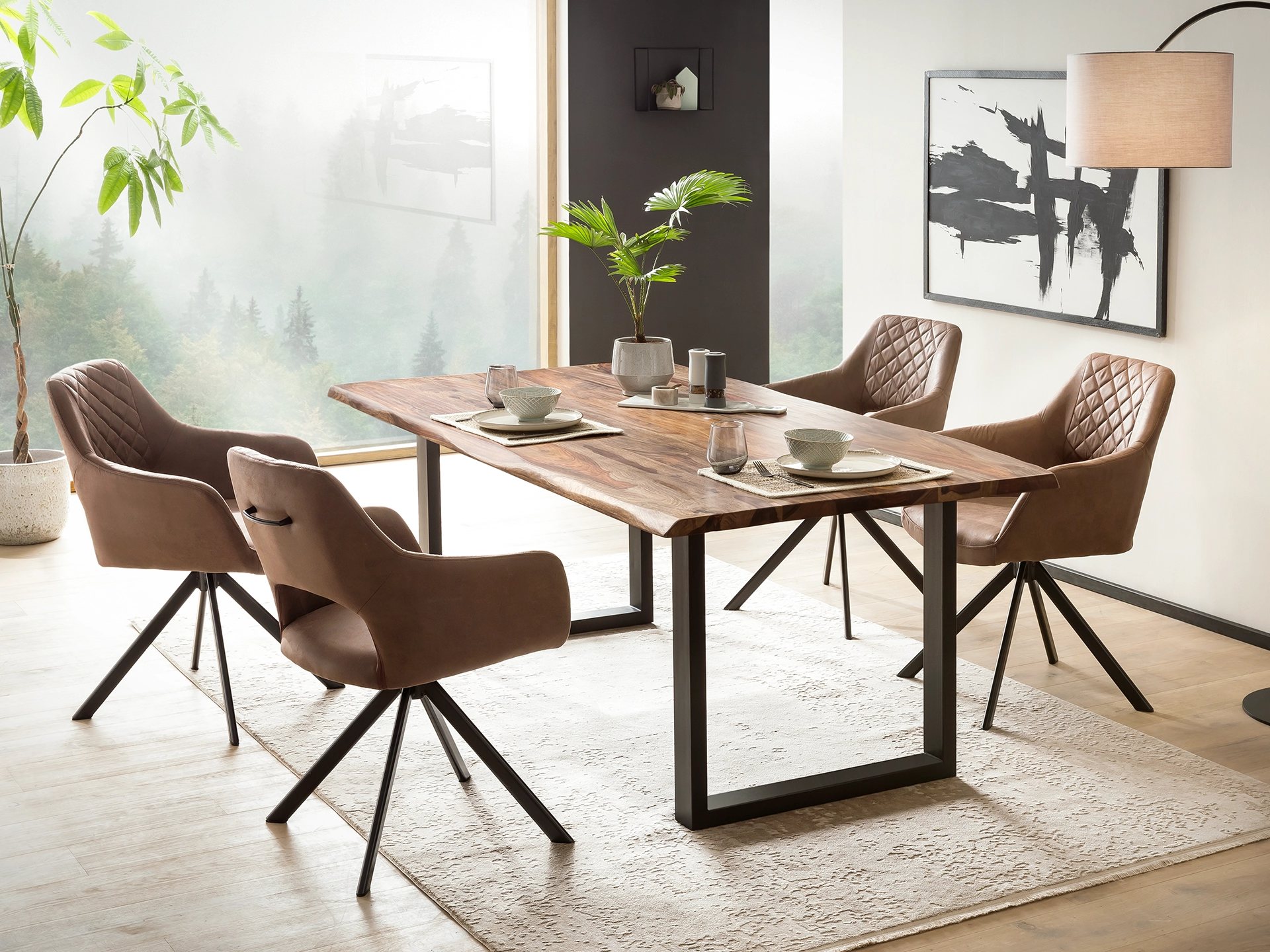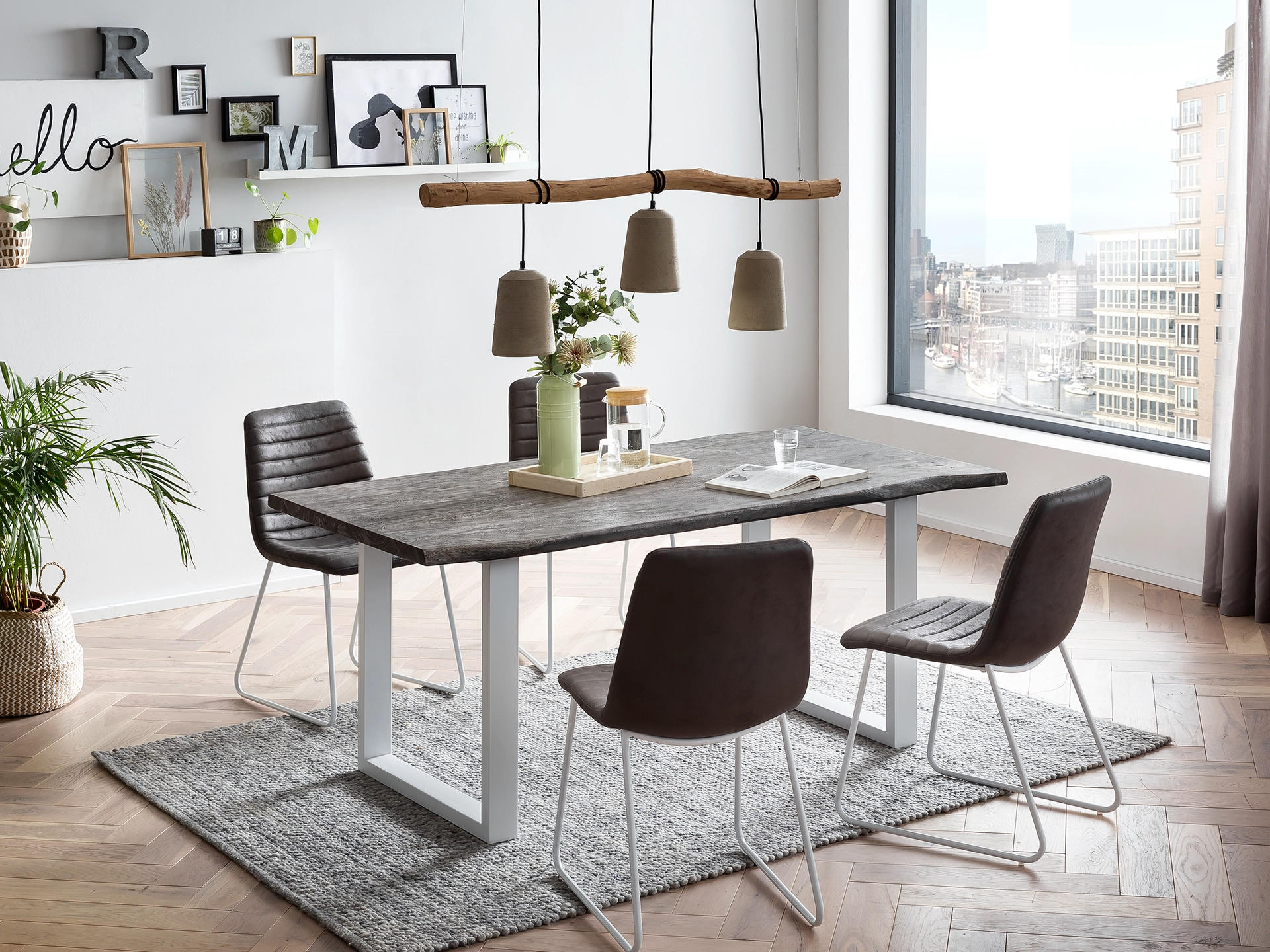 Unsere Bullwer-Esstische sind mehr als Möbel: Eine massive Echtholzplatte, die den Charakter des Baumstamms bewahrt, ruht auf stylischen Metallfüßen. Unregelmäßigkeiten und Astlöcher bleiben – genau wie die Natur sie geschaffen hat. Und dazu? Perfekt passende Sitzbänke, die dein Esszimmer in einem rustikalen Wohlfühlparadies