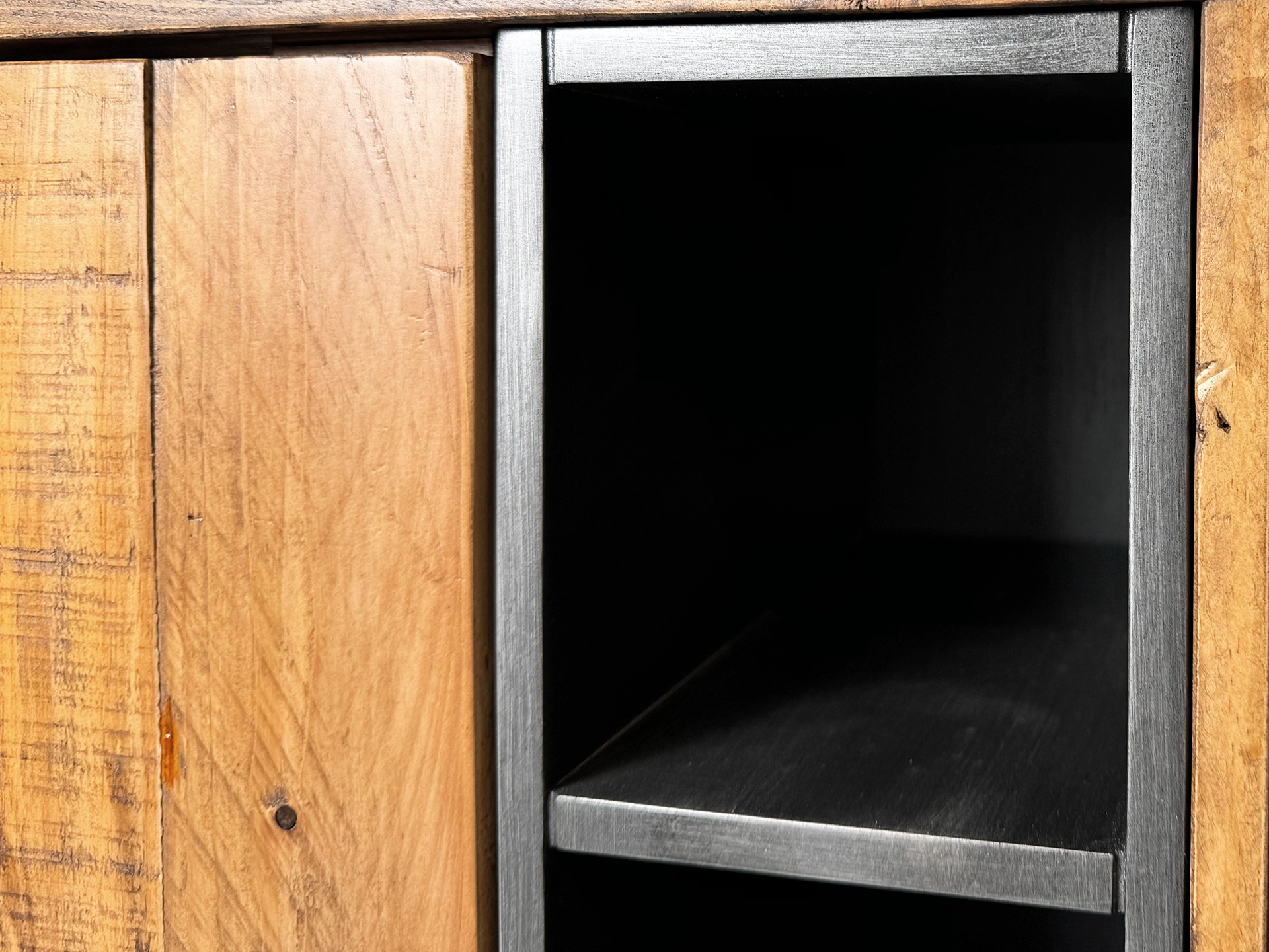 Unsere Badmöbel Serie DETROIT wird aus PINIENHOLZ hergestellt. Die sehr natürliche und unregelmäßige Textur des Pinienholzes passt ideal zum archaisch anmutenden Charakter der Serie und gibt zusammen mit den robusten, rauen Metallrahmen eine gute Kombi ab. Der Anthrazit-Ton der Metallstäbe schafft einen ansehnlichen und harmonischen Kontrast zum warmen Holzton der Pinie – und trotz Fabrikhallen-Charme entsteht so eine einladende Atmosphäre.