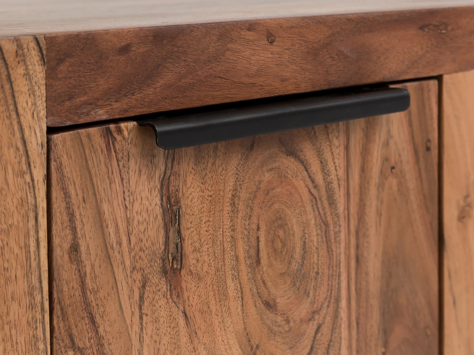 Du suchst Möbel, die Charakter haben und in jedem Raum eine gute Figur machen? Dann ist die Möbelserie Sydney genau das Richtige für dich. Alle Stücke bestehen aus massivem Holz und stehen auf markanten schwarzen Metallfüßen – robust, zeitlos und modern. Sydney gibt’s in drei spannenden Holzarten: Akazie hell, Pinie rustikal braun und Wildeiche.