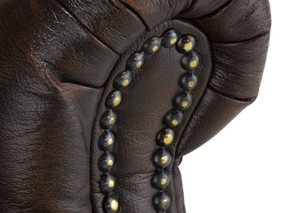 Der Chesterfield-Sessel ist komplett aus hochwertigem Echtleder in antik-braun gefertigt, mit einer massiven Holzkonstruktion. Die markante Chesterfield-Heftung, die Ziernägel in Antik-Messingoptik und die stabilen Beine zeigen das englische-Design. Du bekommst also echtes Möbel mit Leder, Holz und viel Charakter.