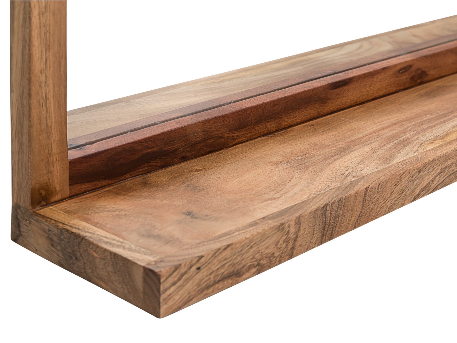 Der Rahmen ist aus massivem Akazienholz, deshalb ist jeder Spiegel ein Unikat mit natürlicher Maserung. Als Spiegel-Akazienholz und Massivholz-Badspiegel wirkt er warm und robust zugleich. Du pflegst ihn einfach mit einem weichen, leicht feuchten Tuch, so bleibt die Holzstruktur lange schön.