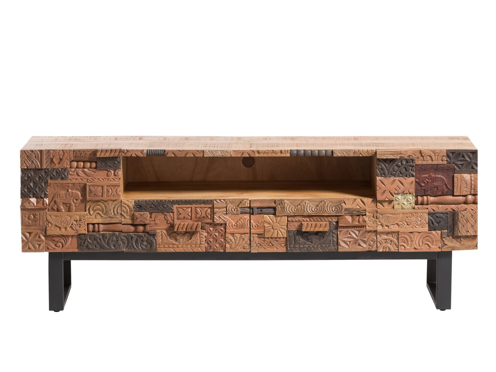Du suchst nach einem TV-Möbel, das nicht nur praktisch ist, sondern auch richtig Charakter hat? Dann ist die TV-Bank Greenland genau Dein Ding. Sie besteht aus massivem Mangoholz und bringt ein Stück indische Geschichte in Dein Zuhause. Die Fronten wurden aus recyceltem Holz gefertigt – alte Türen, Bootsteile oder Fensterrahmen bekommen hier ein zweites Leben. Jedes Stück ist ein echtes Unikat mit individuellem Charme.