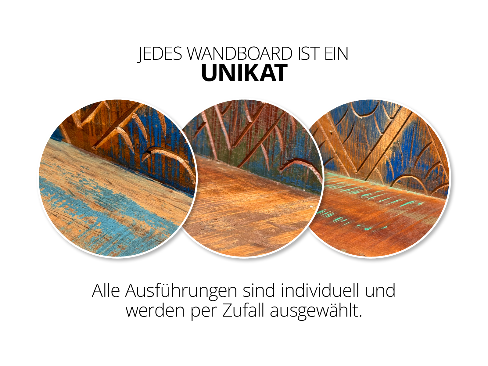 Jedes Stück ist ein Unikat, weil das Mangoholz naturbedingt Relief und Farbspiel zeigt. Farbabweichungen und leichte Maß- oder Formabweichungen sind typisch für dieses Holzregal und machen den besonderen Stil des Wandregals aus.