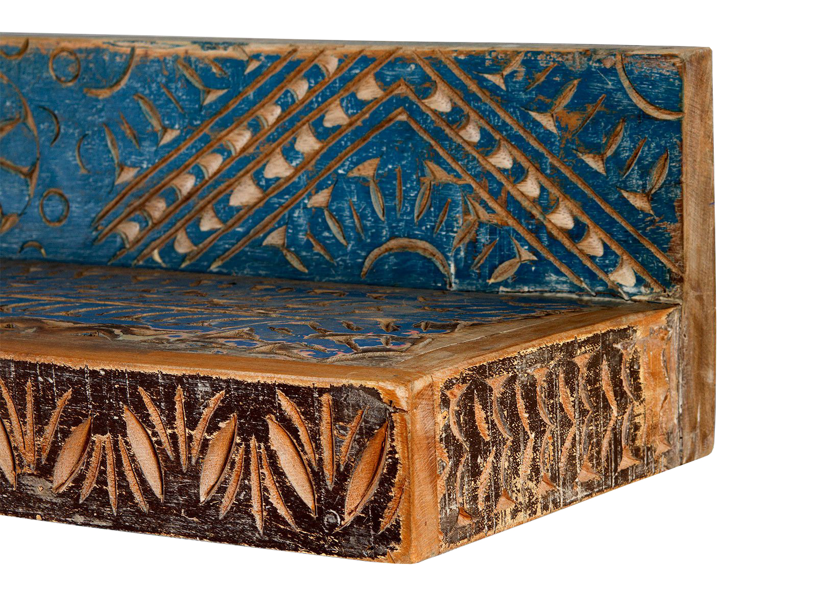 Das Wandregal Blue Lagoon ist ein rustikales Wandboard aus massivem Mangoholz, das als Holzregal und kleines Regal an der Wand funktioniert. Die einzigartige Reliefstruktur und die weiß getünchte Oberfläche geben dem Stück einen Südsee-Stil, als würdest du ein Stück Strandgeschichte in deinem Bad oder Flur hängen.