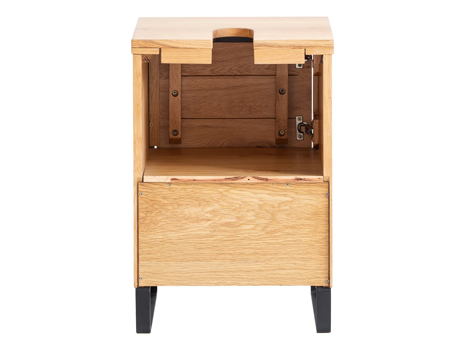Gefertigt aus massiver Wildeiche überzeugt Sydney mit seiner hellen, natürlichen Holzmaserung und einer geölten Oberfläche, die nicht nur schön aussieht, sondern das Holz auch schützt. Die schwarzen Metallfüße und der dezente Metallgriff an der Tür setzen moderne Akzente und machen den Look perfekt – rustikal trifft auf Industrial Chic.