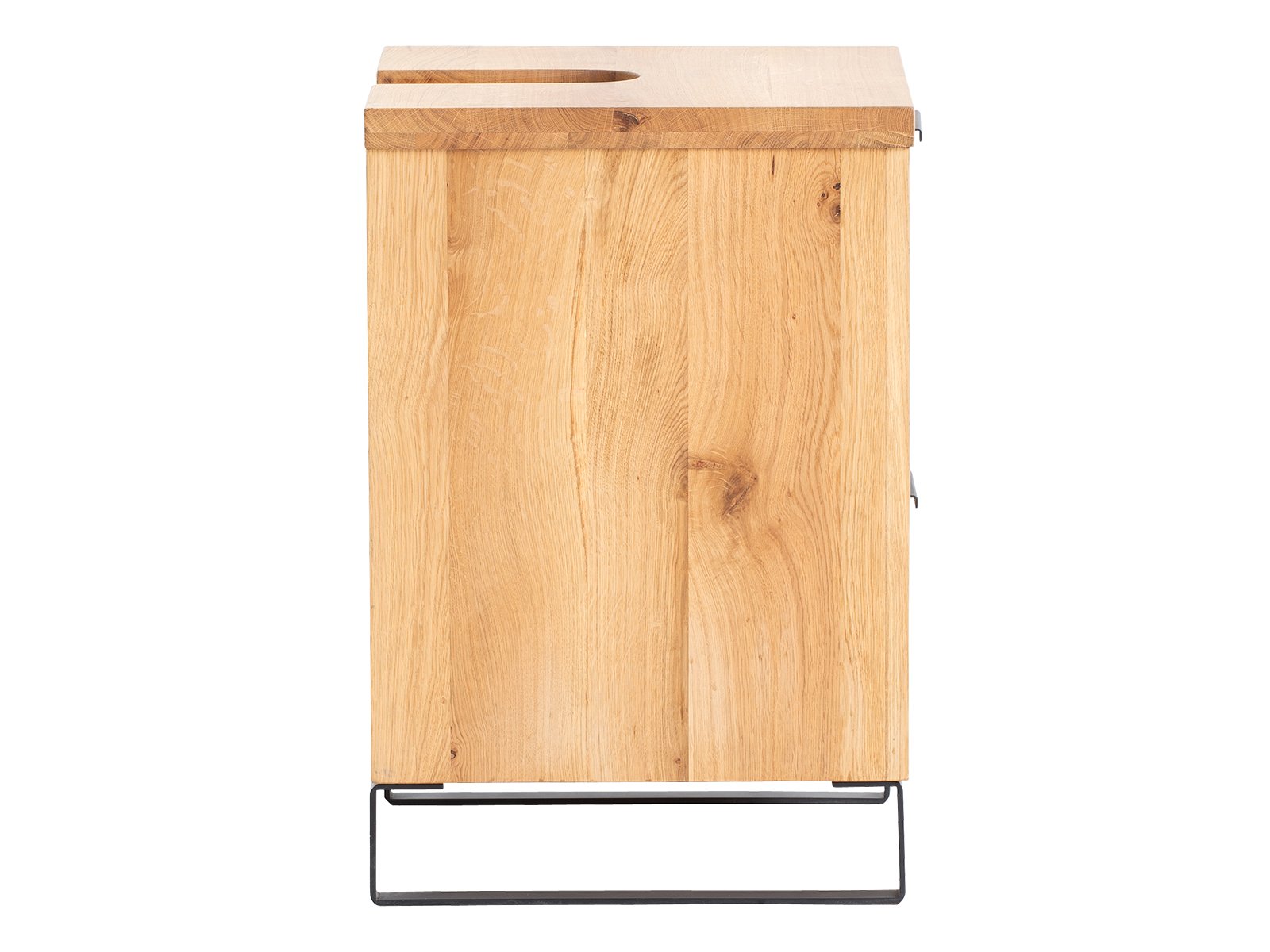 Der Waschtischunterschrank ist aus massiver Wildeiche gefertigt und hat eine geölte Oberfläche, die die schöne Holzmaserung betont. Das wirkt warm und natürlich, fast wie ein Stück Natur im Bad. Pflege leicht gemacht: mit einem feuchten Tuch und mildem Reinigungsmittel abwischen, bei Bedarf Holzöl auffrischen. So bleibt dein Waschbeckenunterschrank-Holz lange schön.