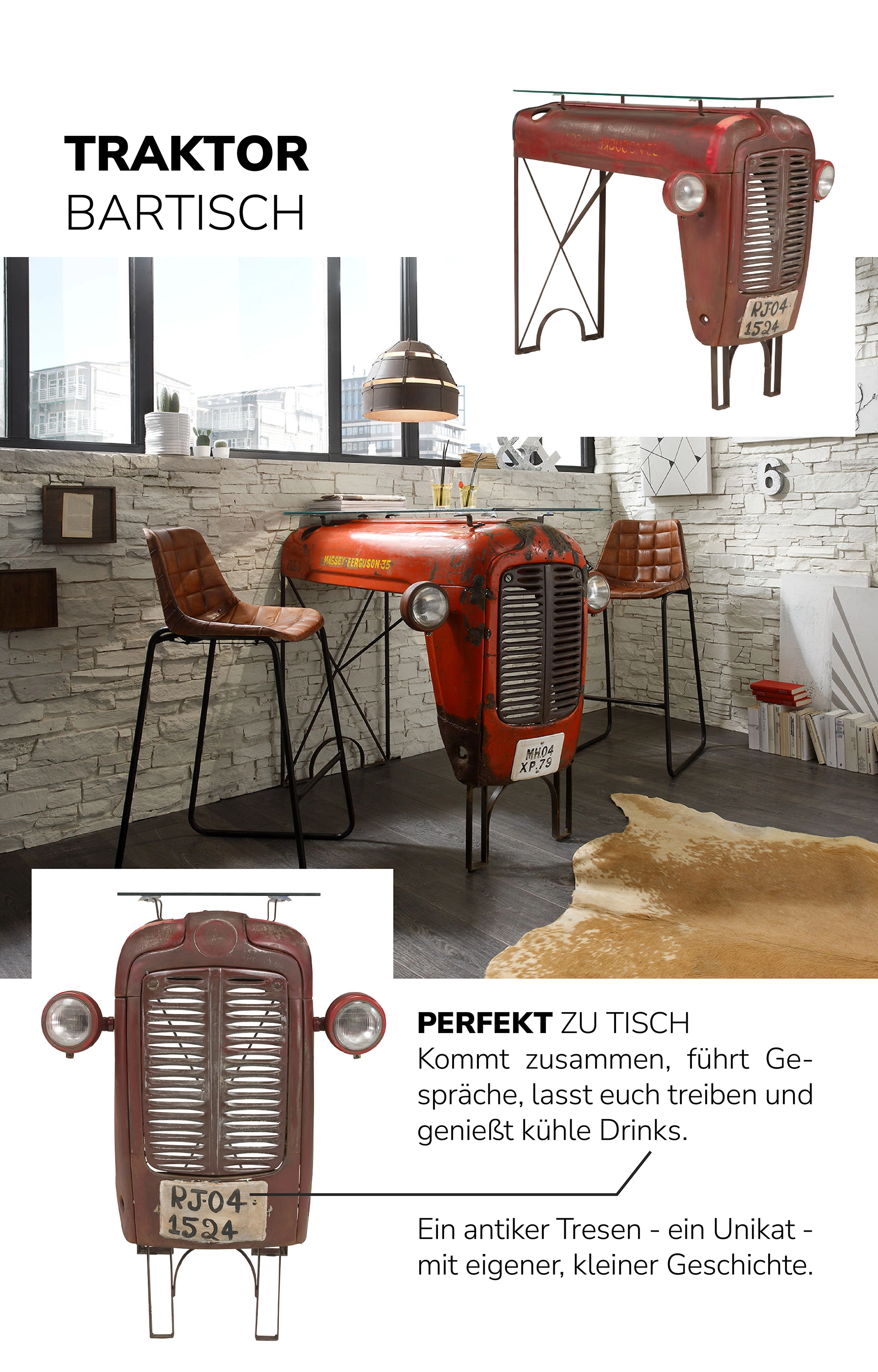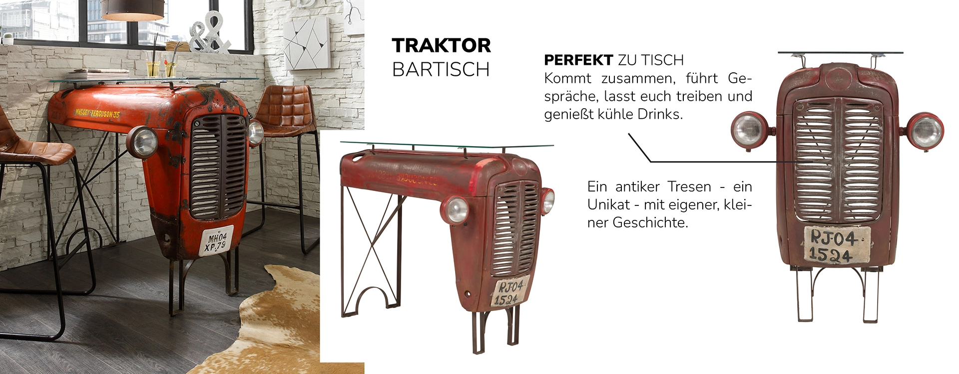 Ob Waschtisch mit Tankelement, Bartisch aus einem Motorradrahmen oder Buffetwagen mit Patina – jedes Stück erzählt eine Geschichte und verbindet Upcycling mit Design und Nachhaltigkeit. Damit machst du nicht nur optisch Eindruck, sondern setzt auch ein Statement für bewussten Konsum und echtes Handwerk.