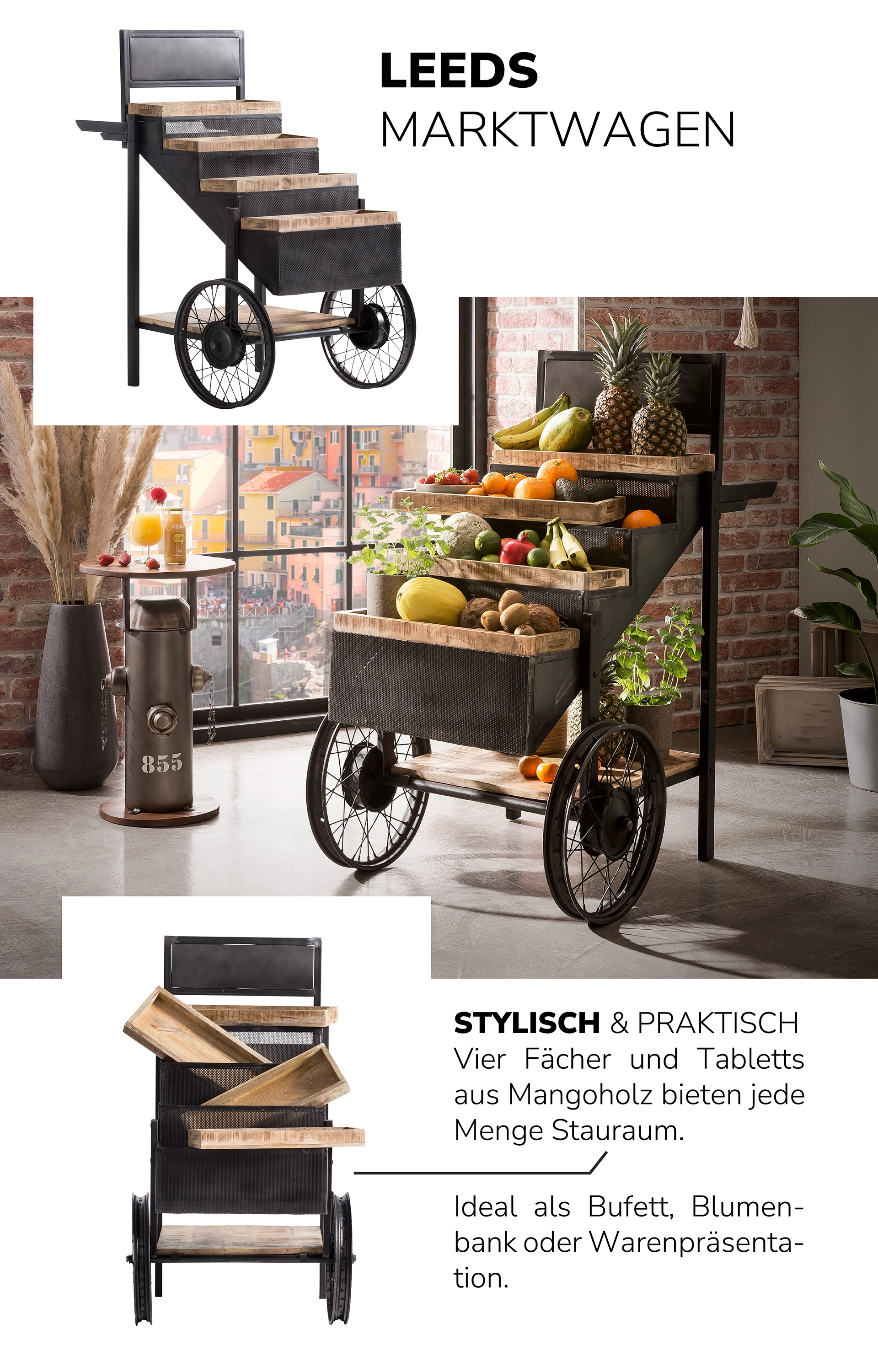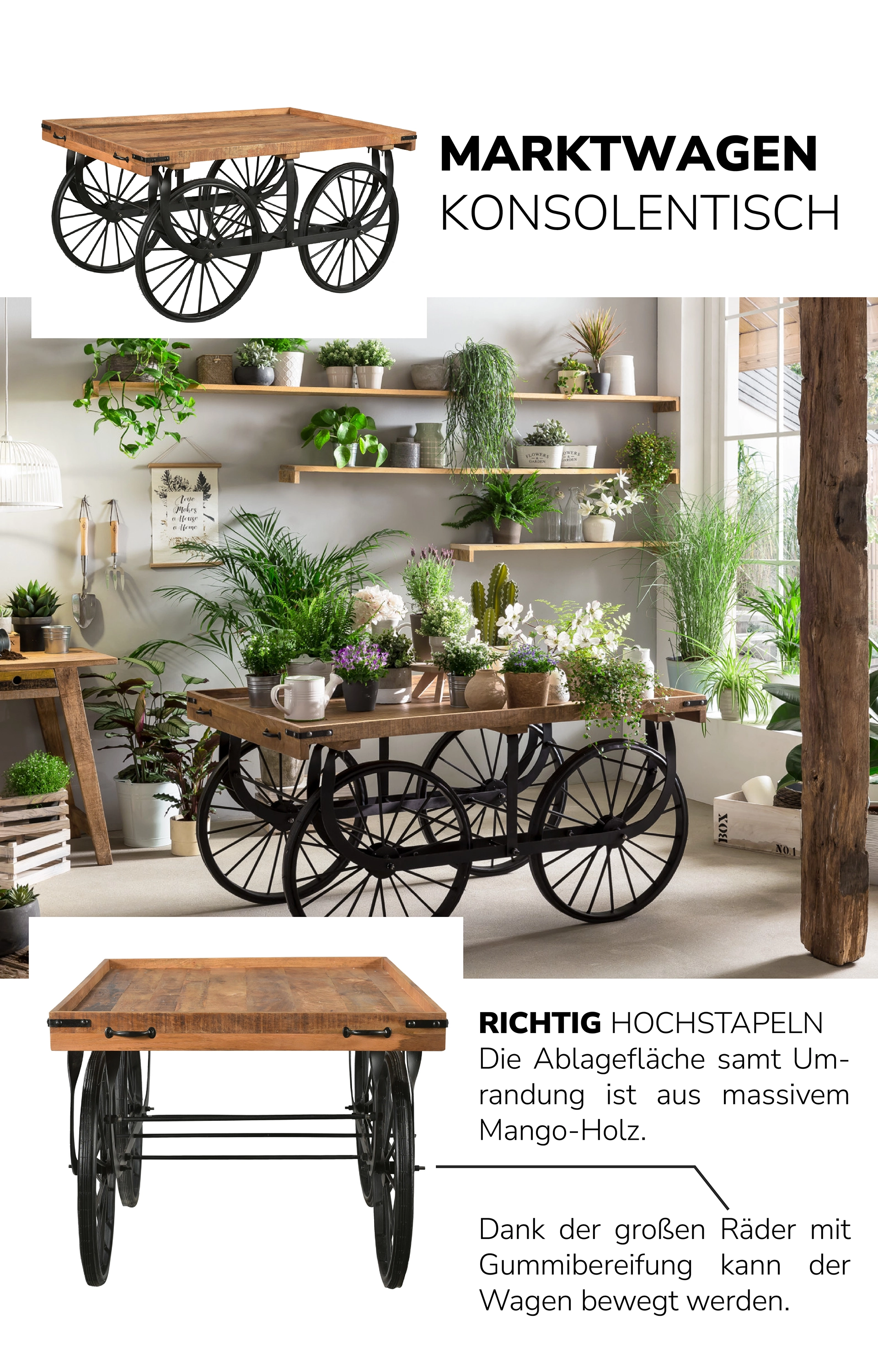 Unsere Konsolentische und Bartresen eignen sich auch hervorragend als praktische Raumteiler zwischen zwei Wohnbereichen, als Bücherregal, im Flur als Ablage und Schuhregal oder um eine offene Küche zu gestalten.