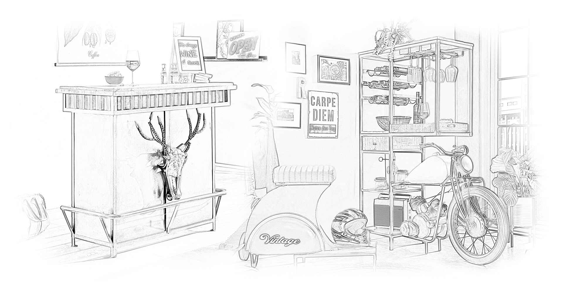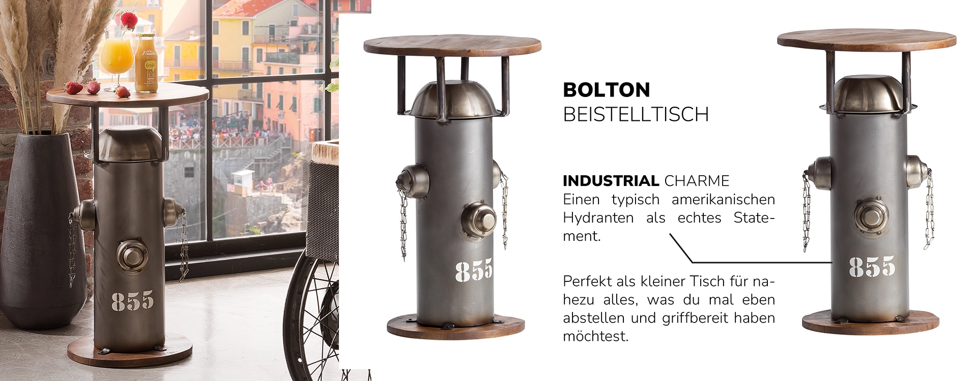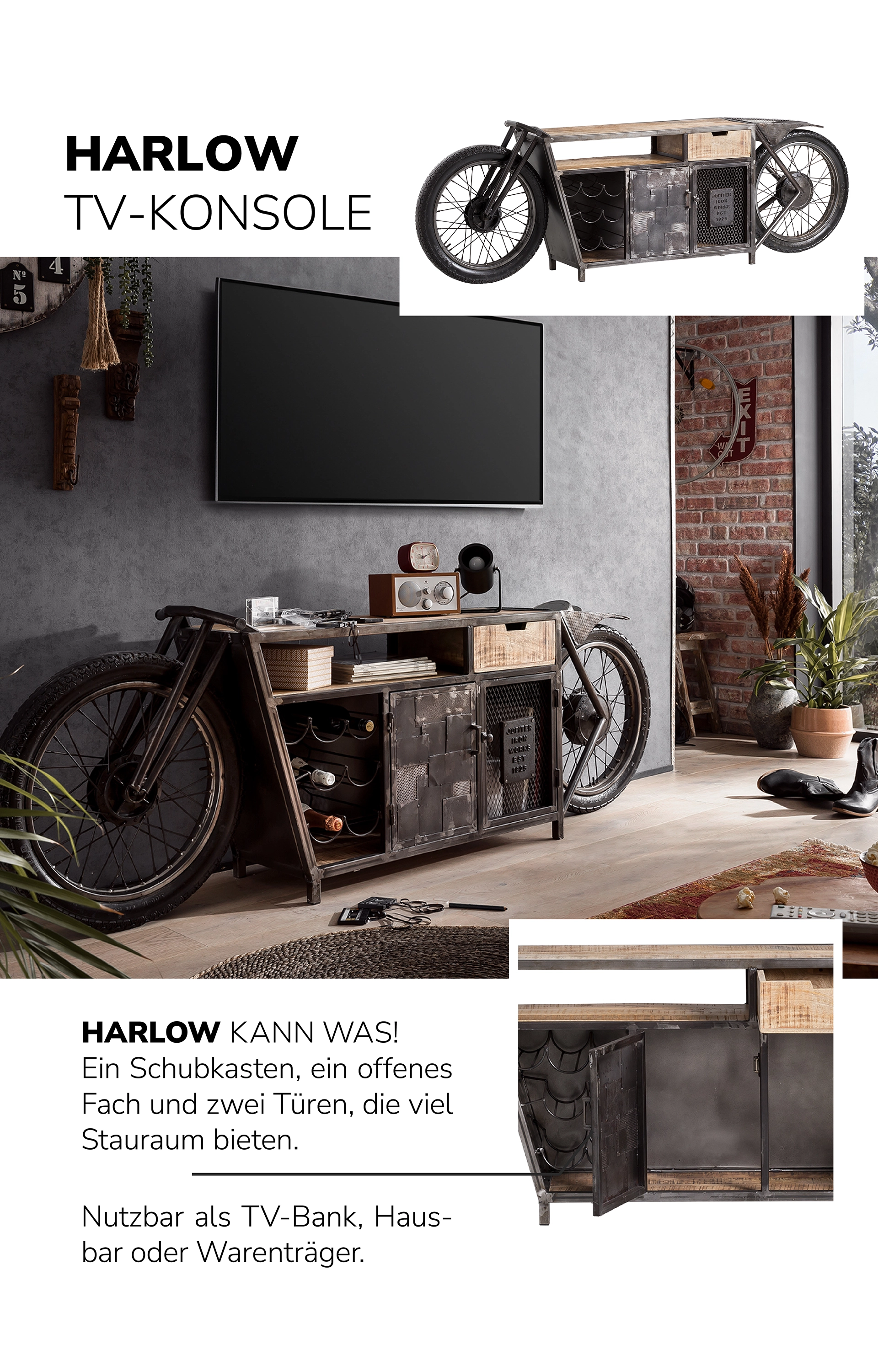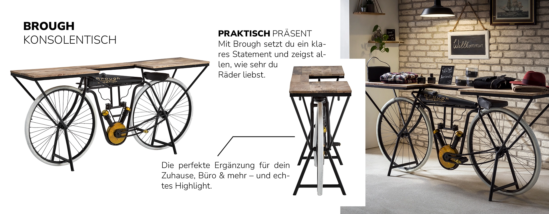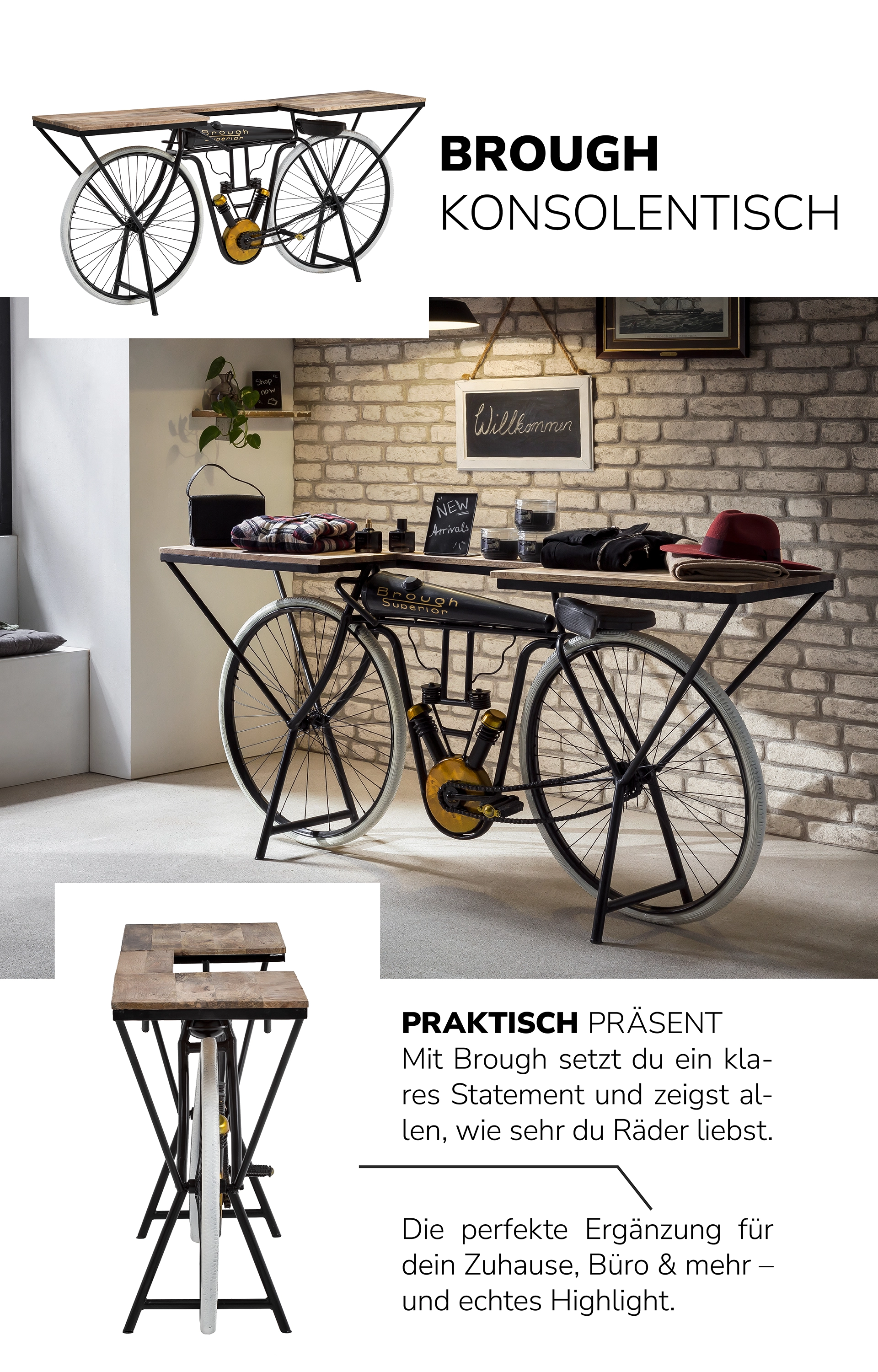 Dann schwing dich auf unsere Wohnwelt BIKES & BARS und lass dich mitreißen – voller Charakter, Handwerk und Upcycling-Spirit.