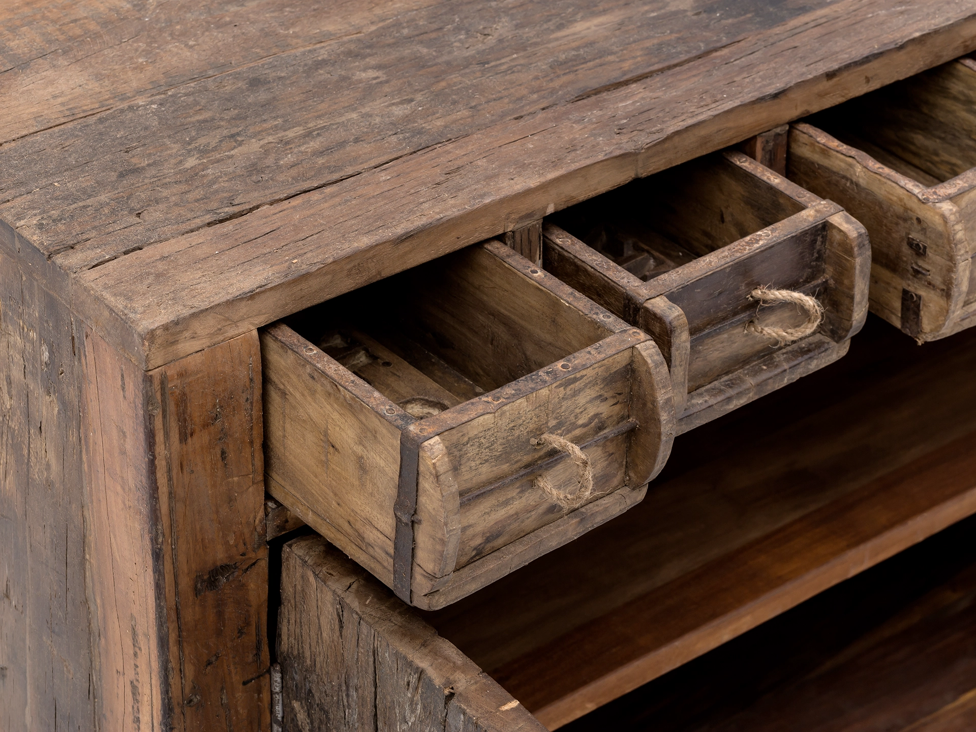 So entstanden aus einer typischen Woodkings- Wahnwitzigkeit Altholzmöbel mit Ziegel-Gießformschüben – die fast an einen alten Apothekerschrank erinnern. Nur vielleicht eben noch einen Tick geschichtsträchtiger.